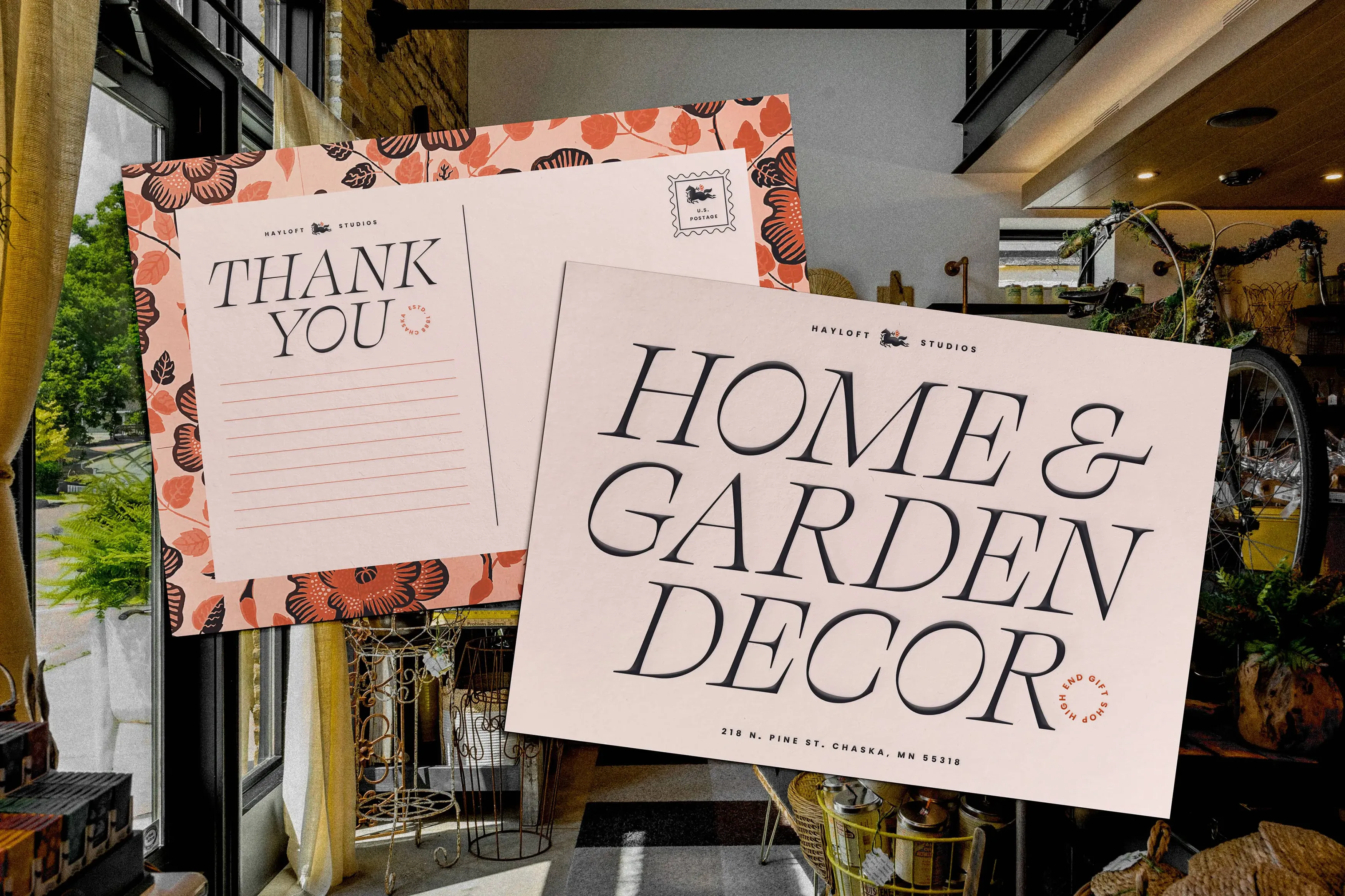 We crafted a logo that brought together both, a horse in full gallop to create a rustic throwback vibe and a floral element to rein it in and create the feel of elevated retail. Our typography also strikes a balance that feels upscale while still feeling warm, welcoming, and maybe even a little playful too. We derived our color selections from the studio itself, and wove in secondary fonts and elements like floral patterns and 19th century maps to add extra flair and personality.