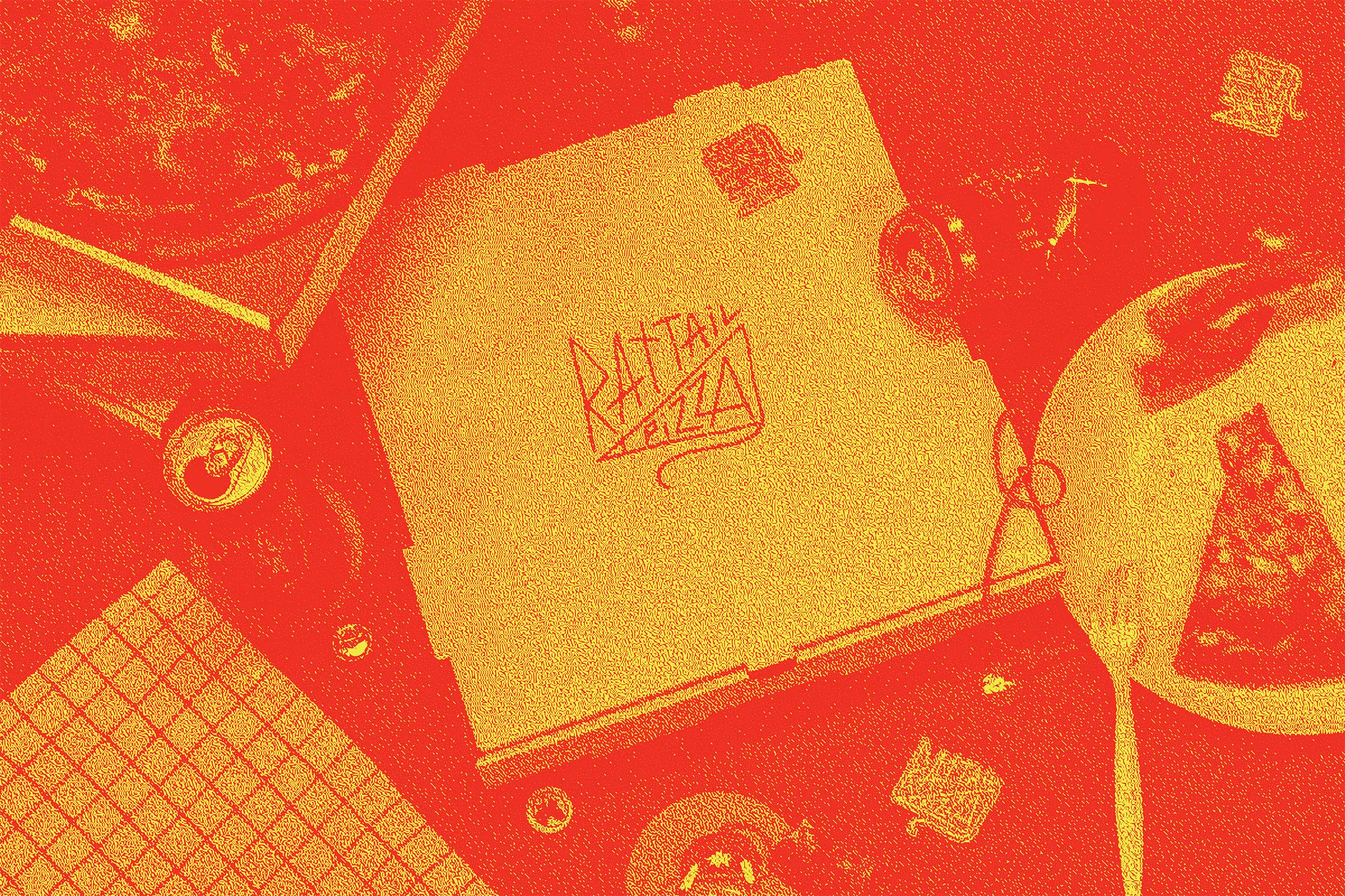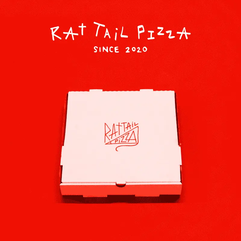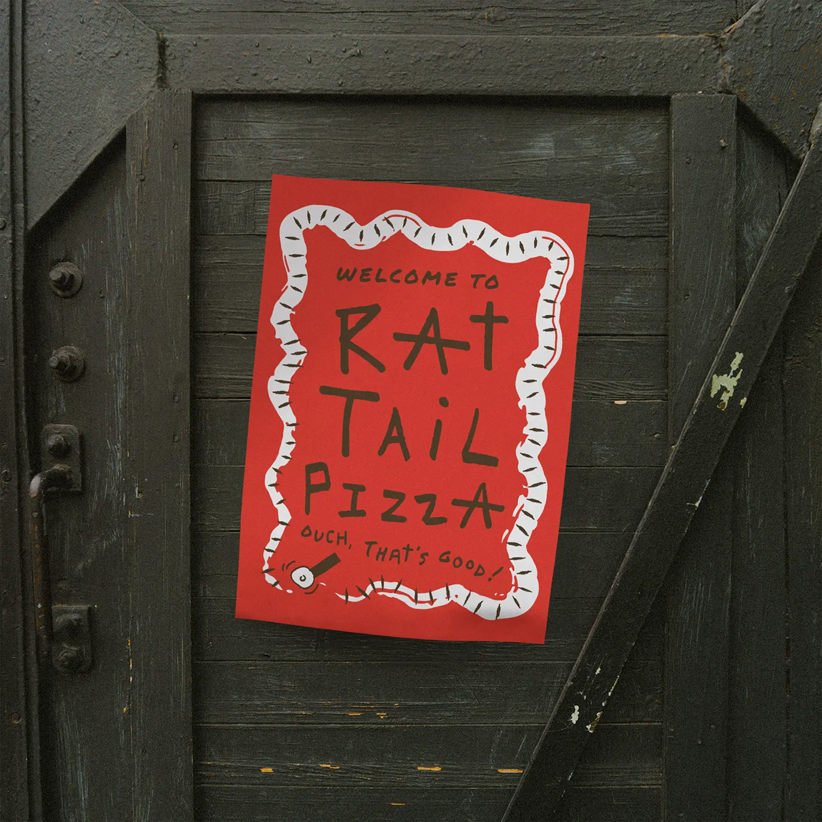 Dan proudly serves Neopolitan and Chicago Tavern-Style pizza with the utmost care for friends and family at Rat Tail Pizza. And much like the name, the brand is anti-hoity-toity. Dan is a rude dude, with plenty of attitude, and the visuals reflect this: crude, hand-drawn type and playful illustration communicate the down-to-earth nature of the pizzeria and the chef behind it.